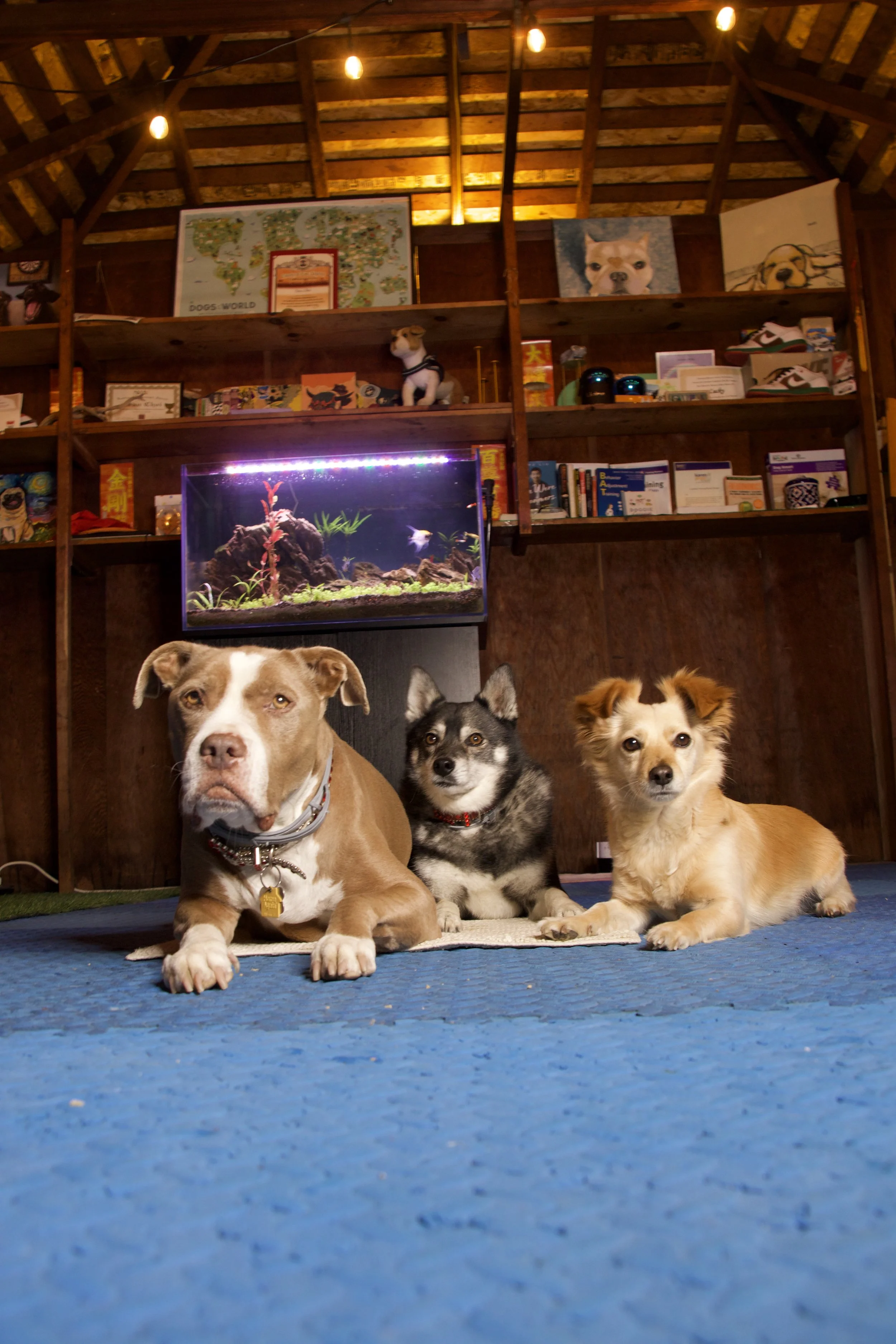 Harpo (the dog on the left posing for a photoshoot) with San’s dogs (Molly and Shadow)